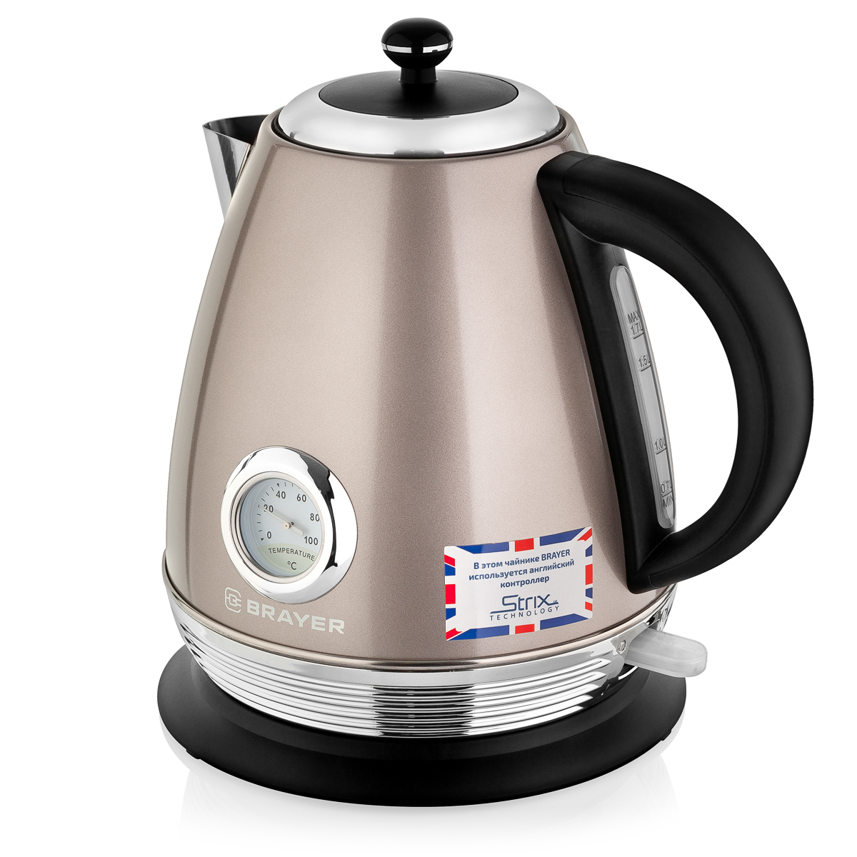 Чайник BRAYER 1008BR-BK , 2200 Вт, 1,7 л, Strix, автоотключ, термост.пласт.