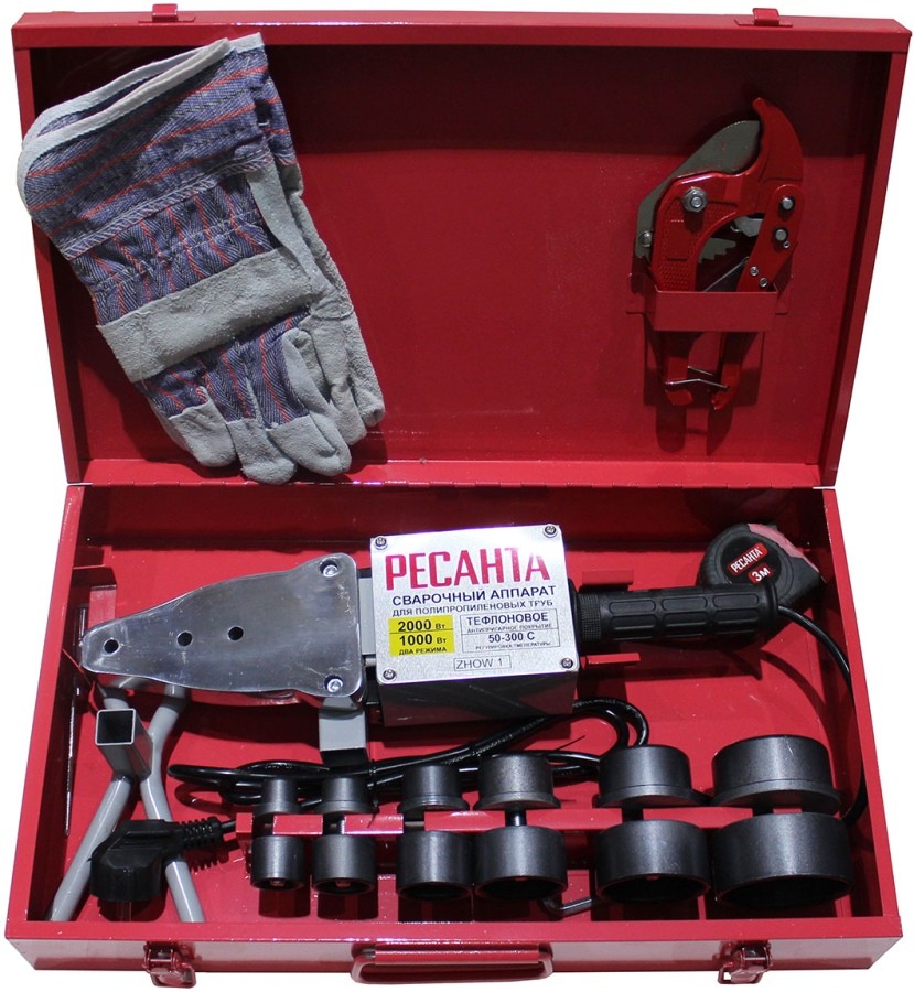 Аппарат для сварки пластиковых труб Ресанта АСПТ-2000 2000Вт, насадки 6 пар (20-63) (кейс, ножницы)