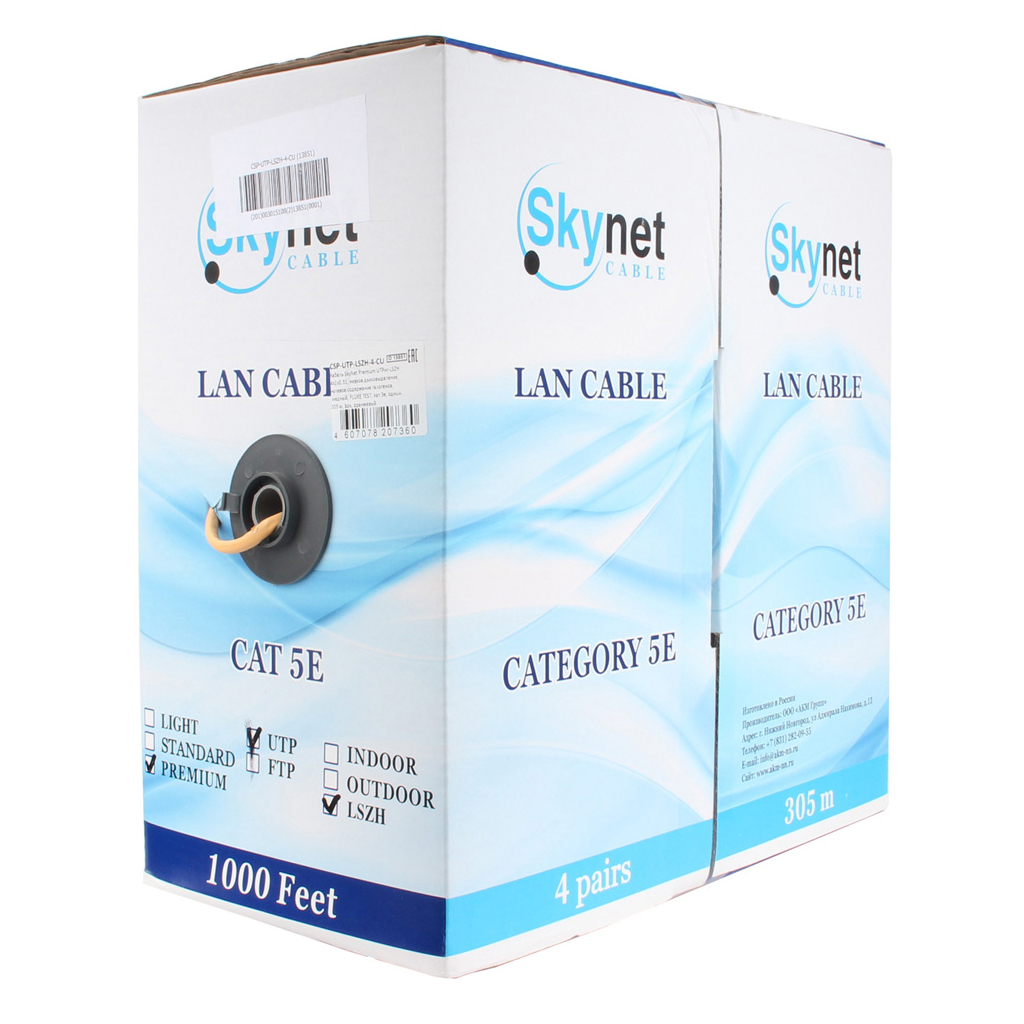 Кабель сетевой бухта SkyNet Premium UTP-LSZH 4x2x0,51, низкое дымовыделение, нулевое содержание галогенов, медный, FLUKE TEST, кат.5e, одножильный., 305 м, box, оранжевый