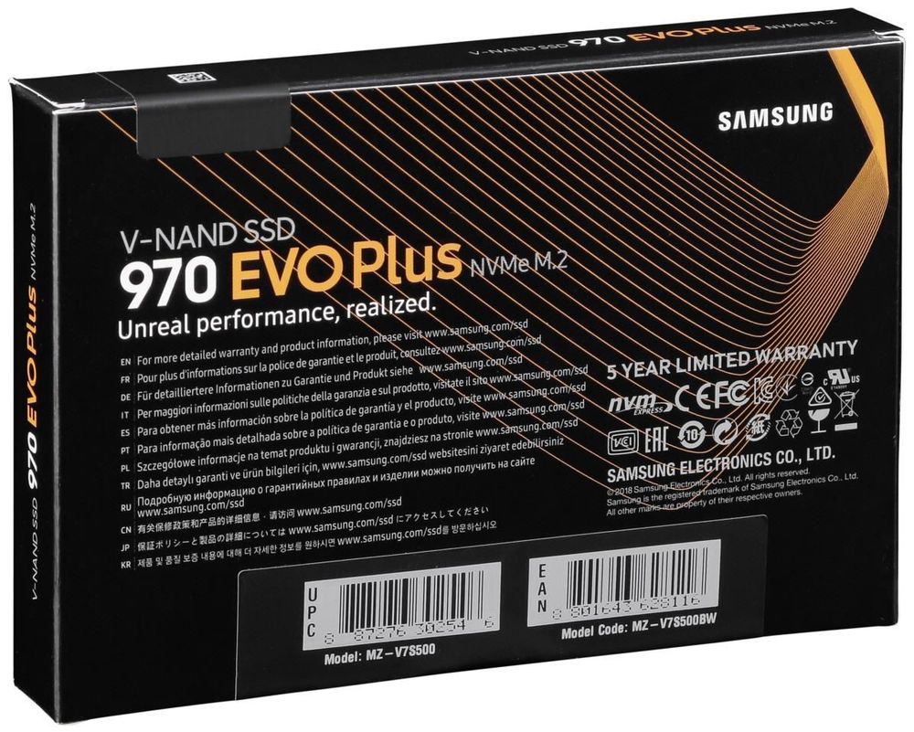 Твердотельный накопитель SSD M.2 500Gb Samsung 970 EVO Plus MZ- V7S500BW, NVMe PCI-E 3500MBsR/3200MBsW, 550k IOPS, 300 TBW