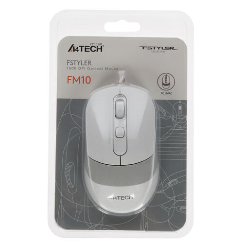 Мышь проводная A4 Tech Fstyler FM10 белый/серый оптическая (1600dpi) USB (4but)