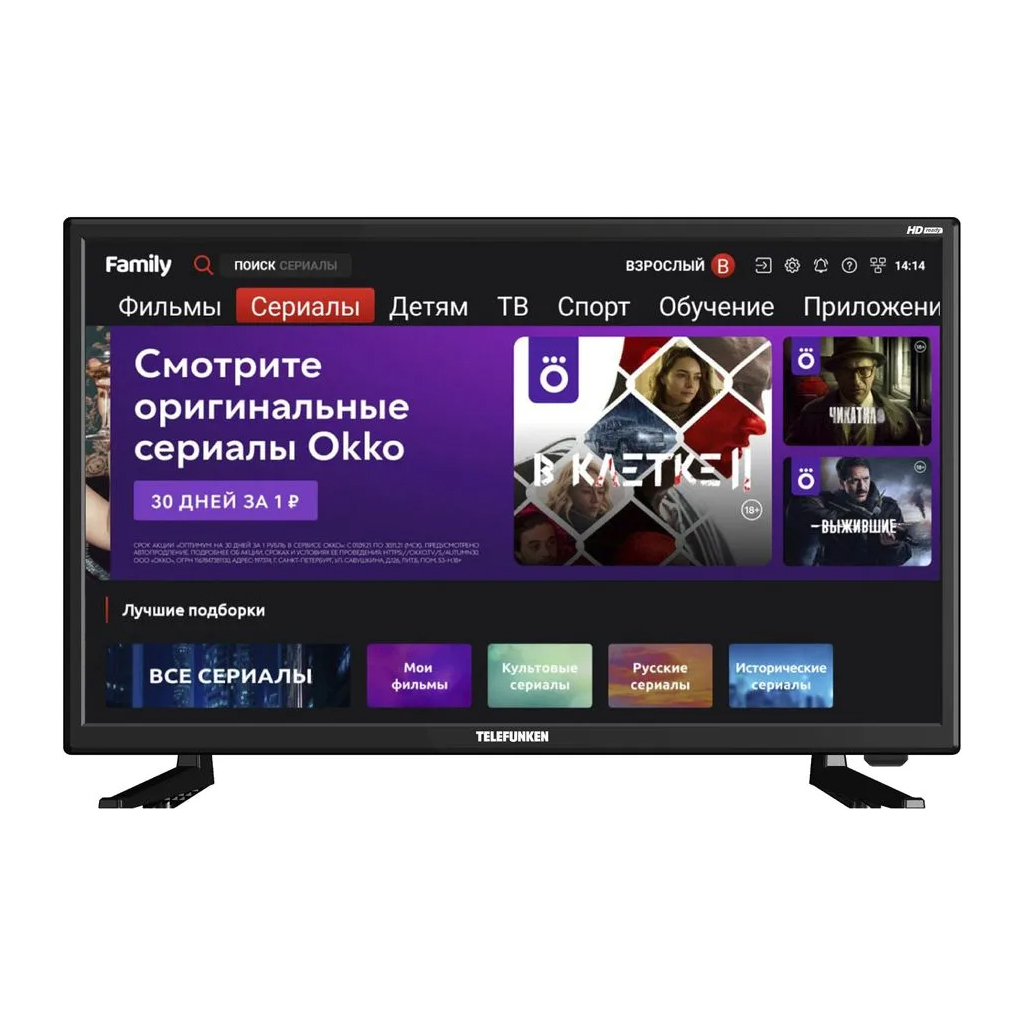 Телевизор LED 23,6" Telefunken TF-LED24S80T2S(черный)H Smart/ HD/ DVB-T/ 50Hz/ DVB-T2/ DVB-C/ WiFi