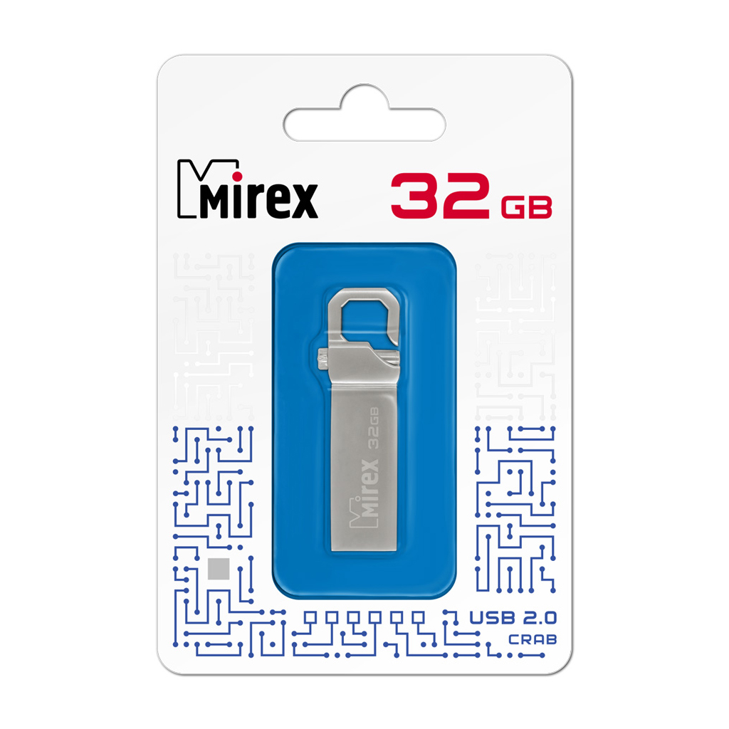 Флеш диск 32Gb USB 2.0 Mirex CRAB нержавеющая сталь , карабин