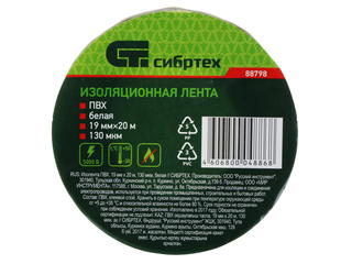 Изолента 19мм х 20м ПВХ белая Сибртех 88798