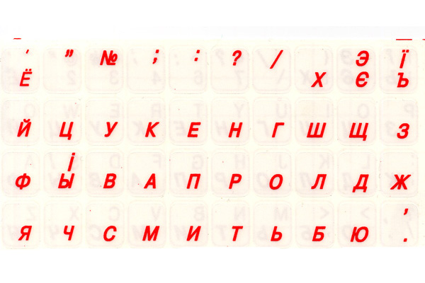 Наклейка на клавиатуру рус., прозрачная плёнка, красные буквы, 10 дюймов