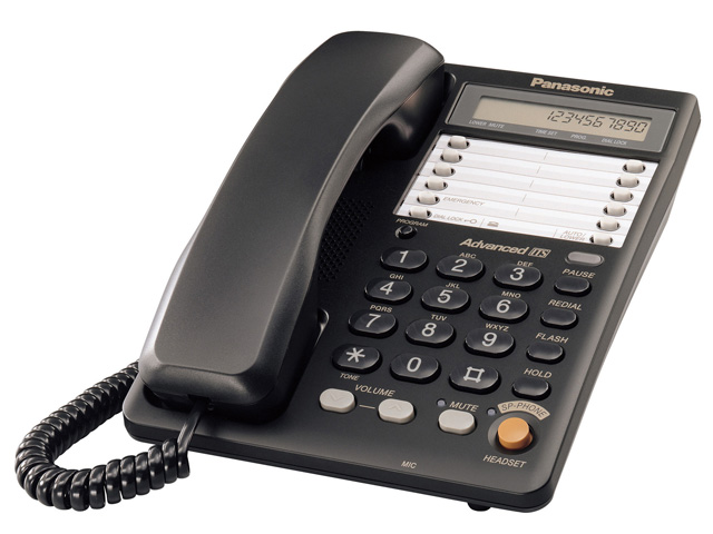 Телефон Panasonic KX-TS 2365RUB черный (Автодозвон, Спикерфон, 16-значный ЖК-дисплей с часами, Однокнопочный набор 20 номеров,Ускоренный набор 10 номеров)
