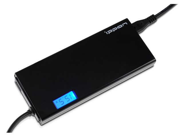 Адаптер для ноутбука универсальный 12V 90Вт Ippon SD90U черный, 15-19,5V, 11 сменных штекеров, USB-порт 5V/2А, тонкий корпус, питание и зарядка USB-совместимых устройств (MP3-плееров, мобильных телефонов, КПК, GPS-навигаторов, iPhone, iPad и др.)