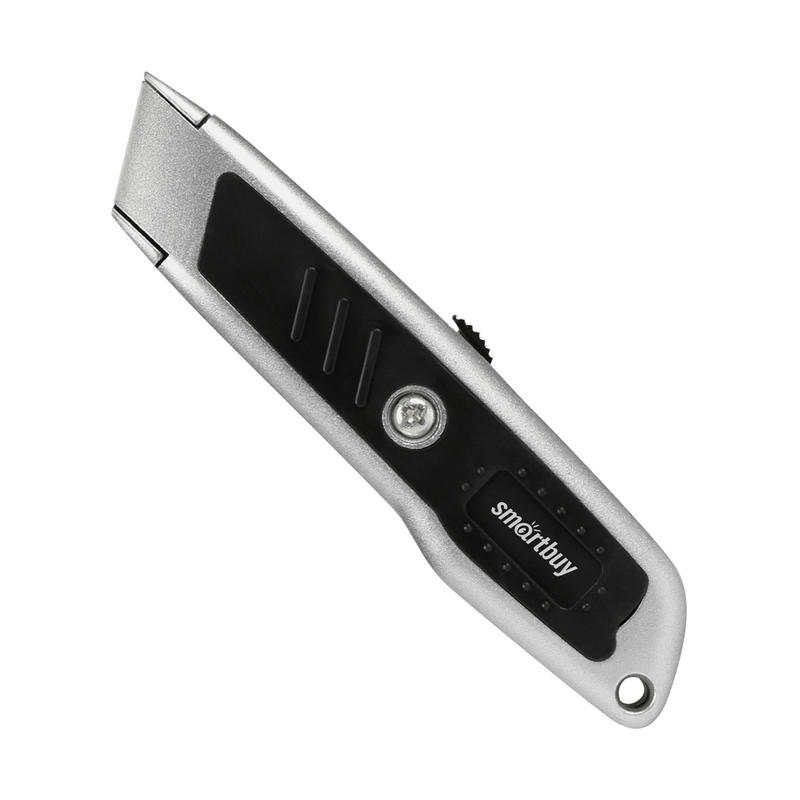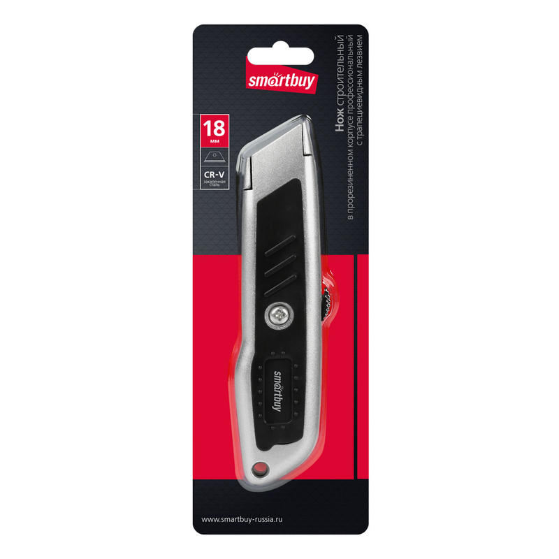 Нож строительный трапециевидное лезвие, прорезиненный стальной корпус, Smartbuy Tools