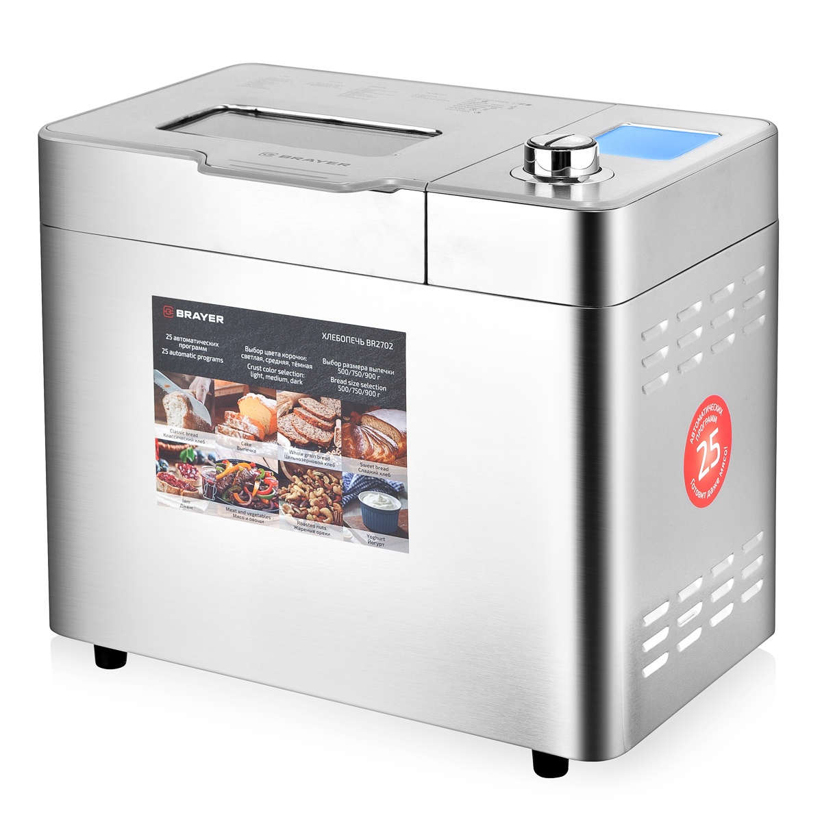 Хлебопечь BRAYER 2702BR, 600 Вт, 25 программ, выбор цвета кор,выбор размера, поддерж. темпер, таймер
