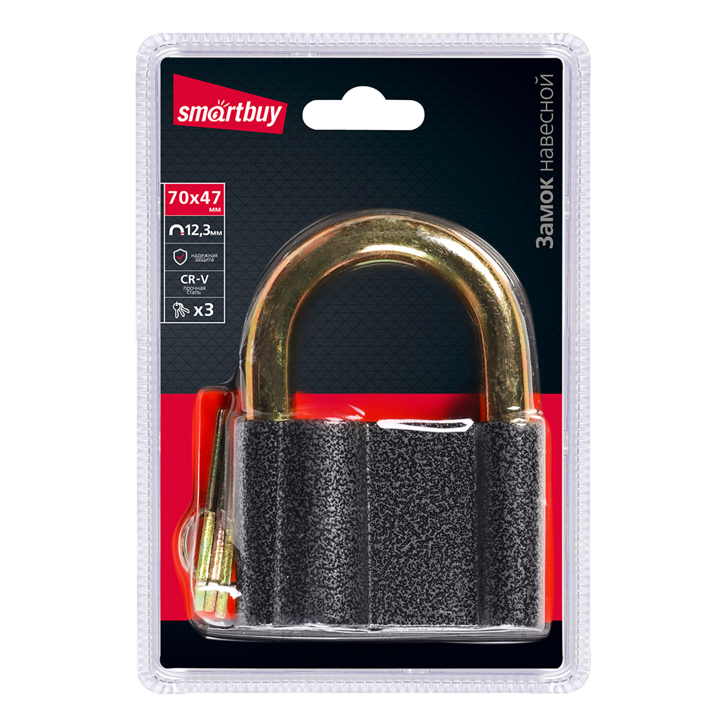 Замок навесной 70*47 мм, дужка d12.3 мм, 3 кл., Smartbuy/