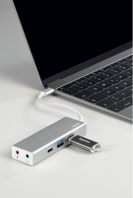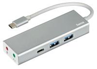 Концентратор USB-C 3порт. Hama Aluminium серебристый (00135758)