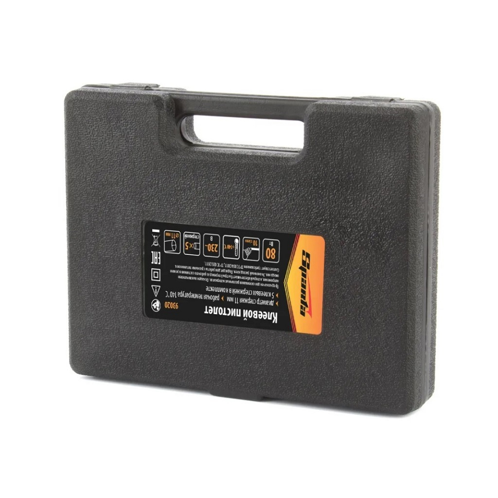 Клеевой пистолет Sparta 80Вт, 11мм, 10гр/мин, 145 °С, антикапельная защита, кейс 93020