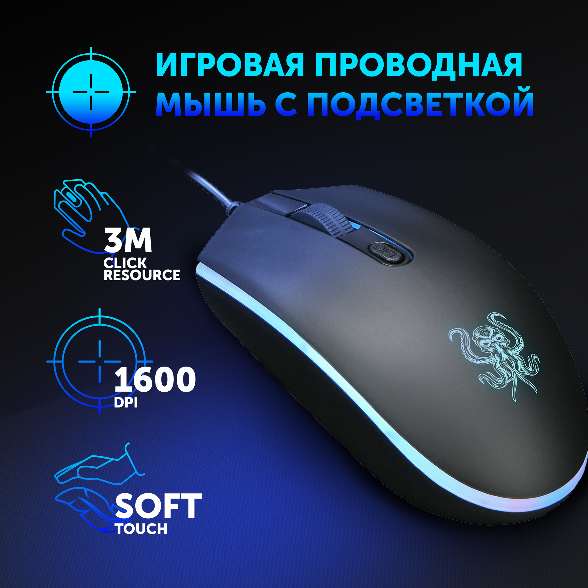 Мышь проводная Oklick 706G OCTA черный оптическая (1600dpi) USB (4but) 1