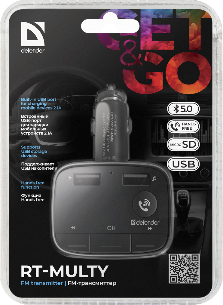 Плеер FM DEFENDER RT-MULTY BT/HF Bluetooth, USB 2.0, micro SD, черный,
