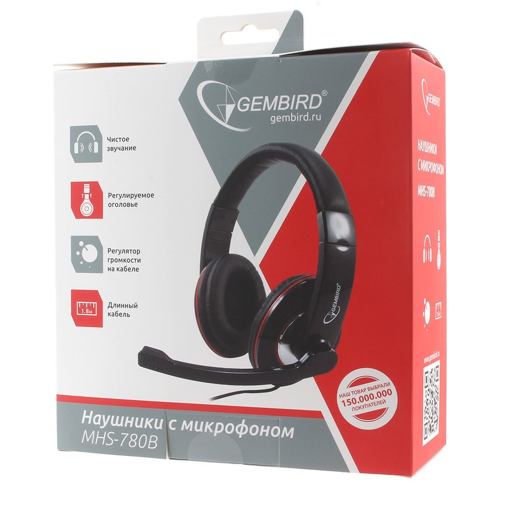 Наушники+микрофон Gembird MHS-780B , черный, регулятор громкости