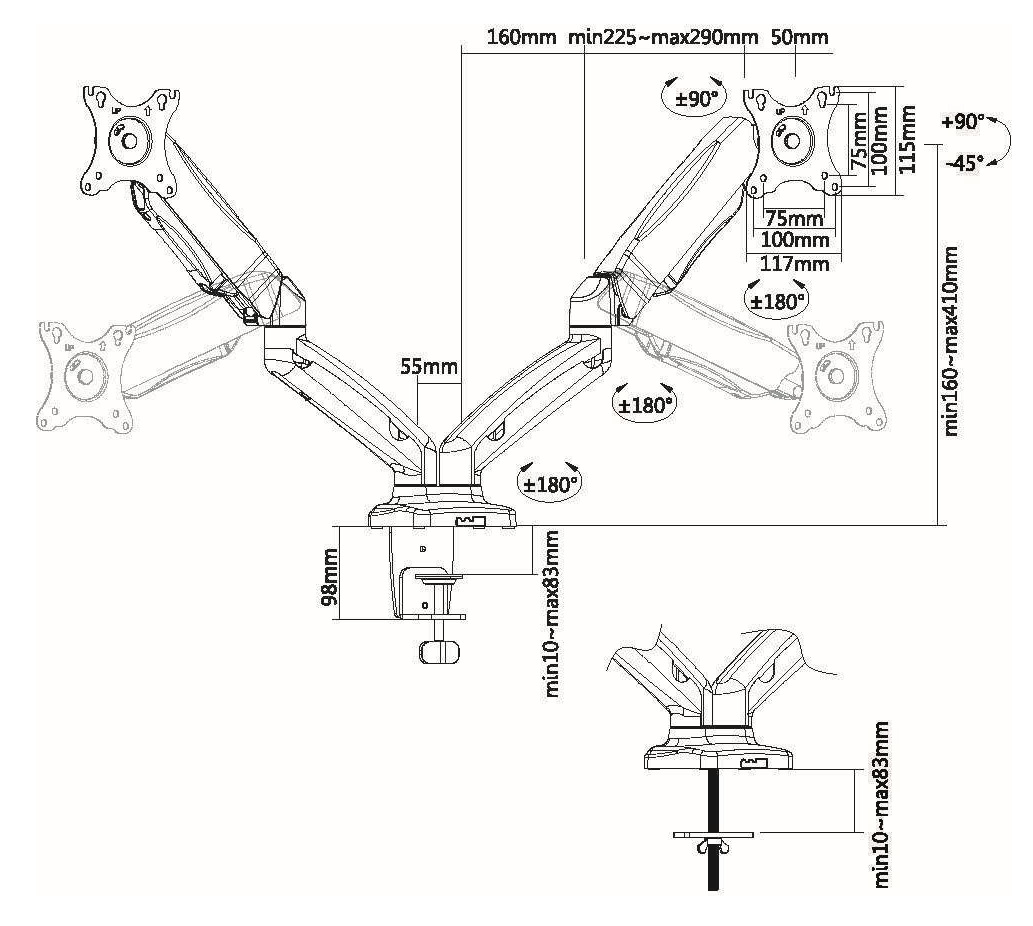 Кронштейн для 2-х мониторов настольный Ultramounts UM705 черный 13"-27" макс.13кг настольный поворот и наклон верт.перемещ