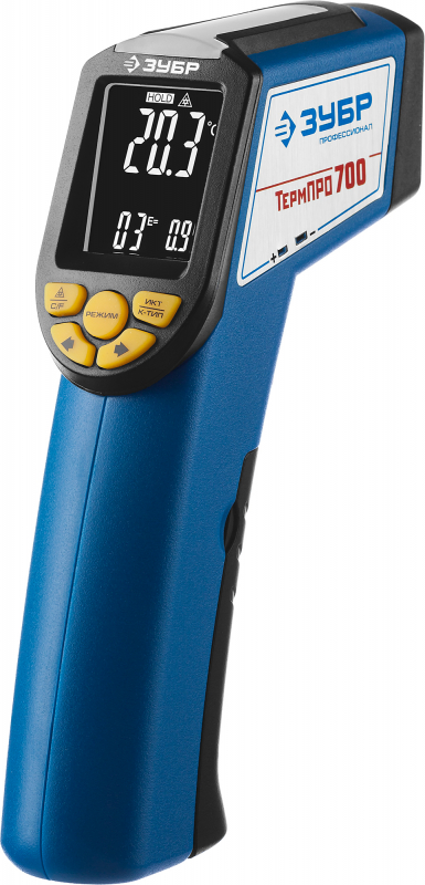 Пирометр Зубр ТермПро 700 инфракрасный, -50°С +650°С, коэфф. EMS 0.1-1.0, лазерный целеуказатель, функция поиска "мостиков холода", контактного измерения, автоотключение, звуковой индикатор (45721-650)