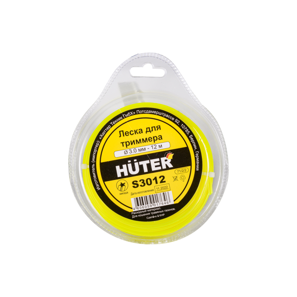 Леска для садовых триммеров Huter S3012 (звезда) 3 мм, 12 м