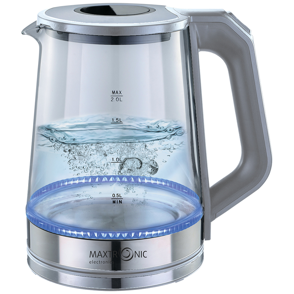 Чайник Maxtronic MAX-1780 объем : 2 л; мощность : 1800 Вт; нагревательный элемент : закрытый; автоотключение при отсутствии воды, индикаторы : включения; уровня воды; подсветка, материал корпуса : стекло; цвет нерж. сталь/серый.