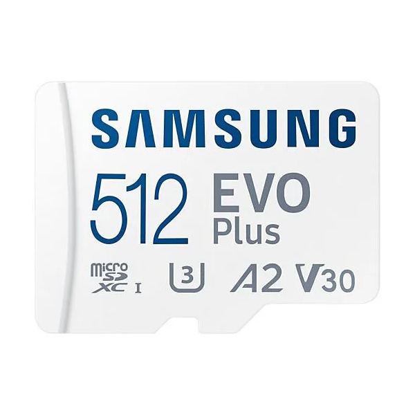 Карта памяти Micro-SD 512Gb Class 10, Samsung EVO Plus microSDXC (MB-MC512KA) A2, Video Class 30, UHS Class 1, запись - 130 Мбайт/сек, чтение - 130 Мбайт/сек