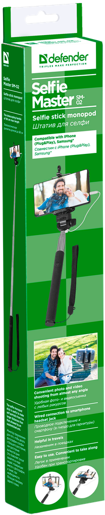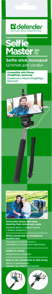 Монопод для селфи Defender SM-02 29403 Телескопическая рукоятка длиной до 90см