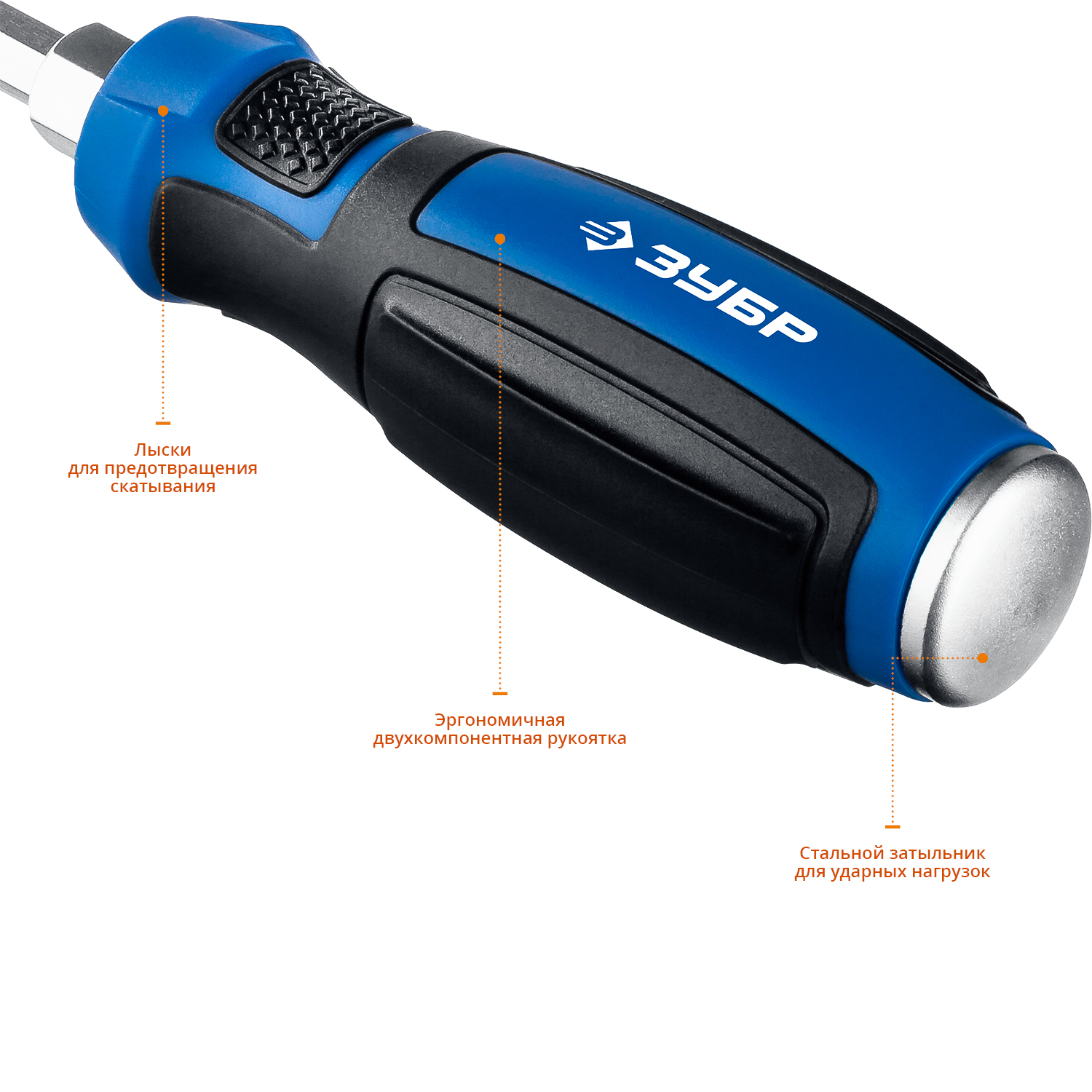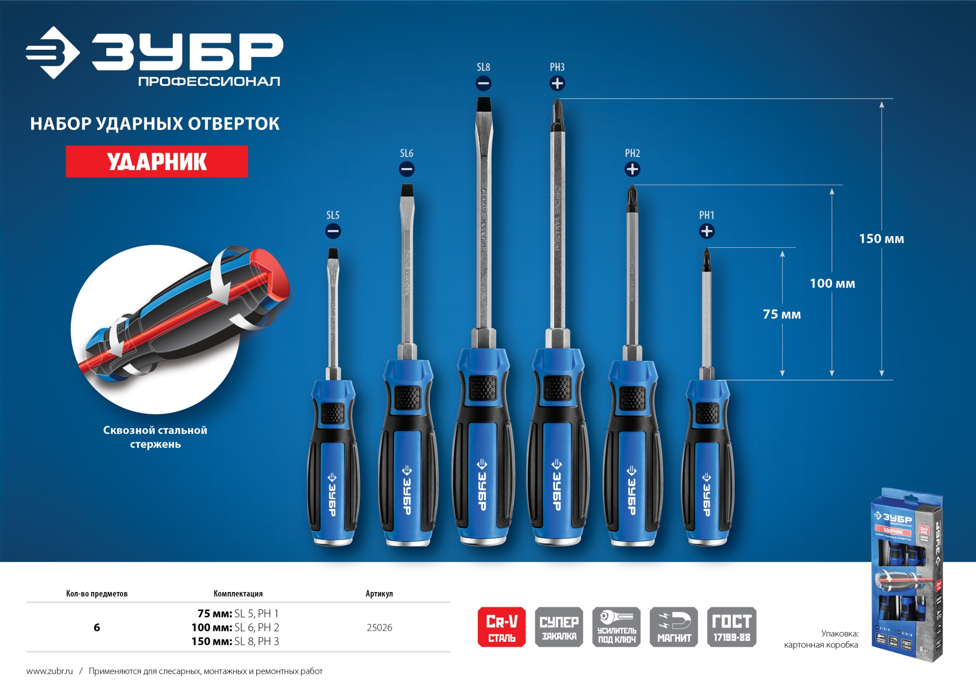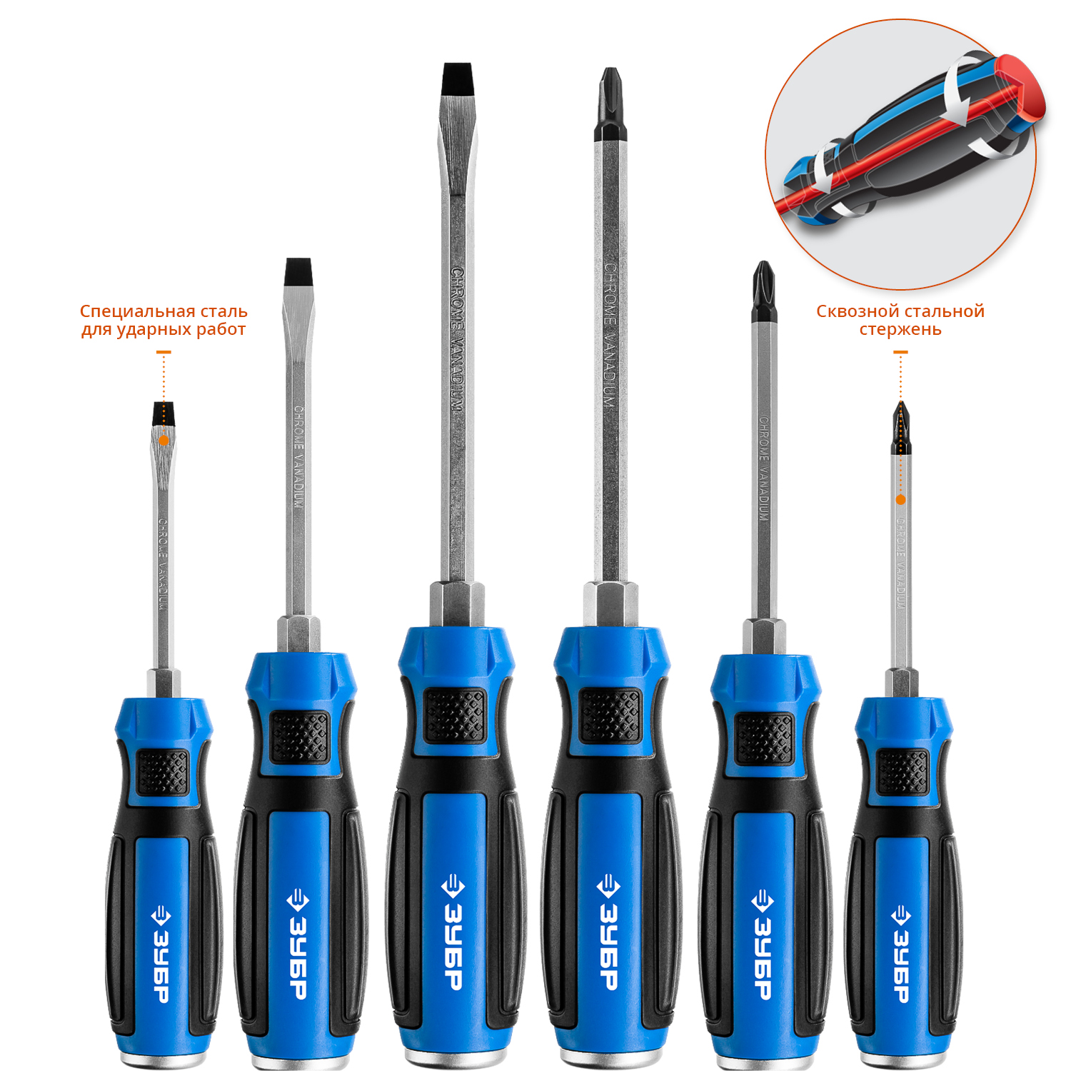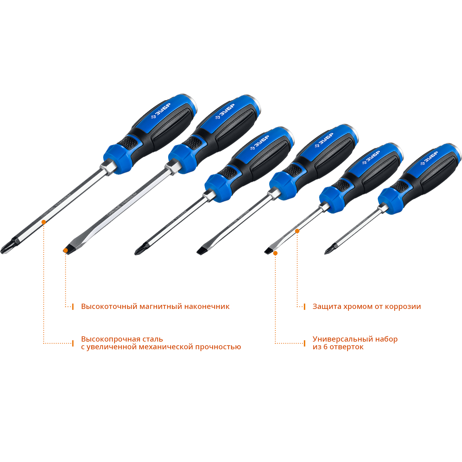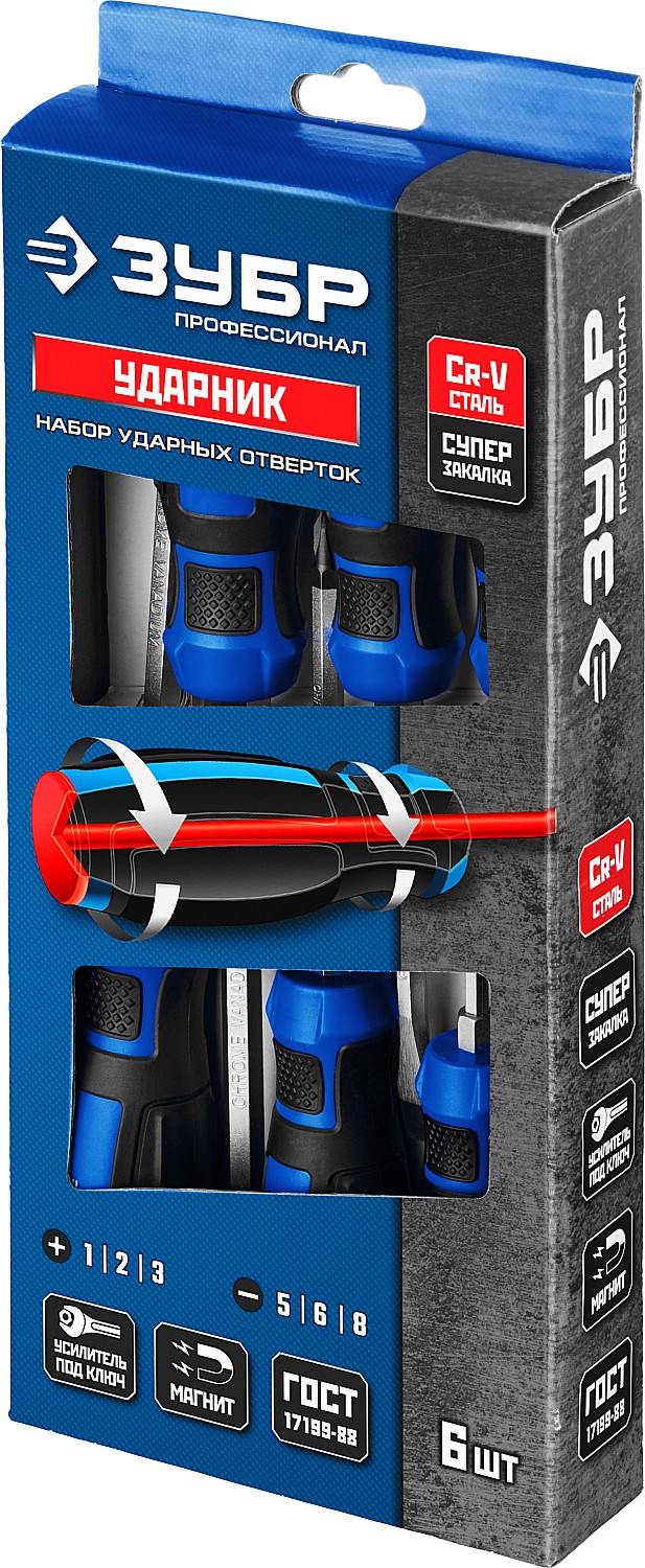 Набор отверток 6шт Зубр " Ударник" ударные, магн.наконечник, двухкомпонентные рукоятки (25026)
