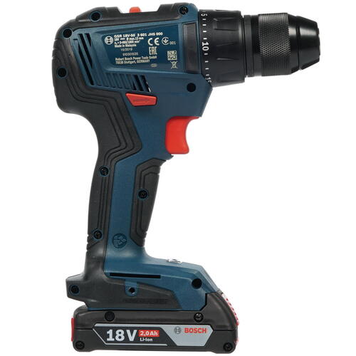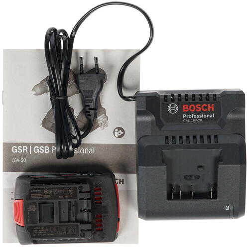 Дрель-шуруповерт Bosch GSR 18V-50 аккум. патрон:1,5-13мм быстрозажимной, 18В, 2х2Ah, 420-1800 об/мин, 18/50Нм, сталь-13мм, дерево-35мм, 2 скор, реверс, подсветка, тормоз двигателя, блокировка шпинделя, 1кг, кейс (06019H5020)