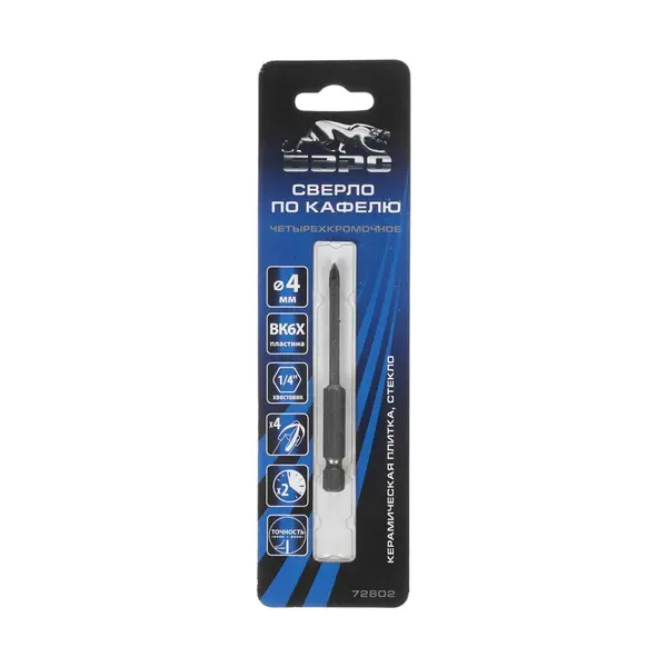 Сверло по керам. плитке 4мм крестовая пластинка, шестигр. хвостовик Барс 72802