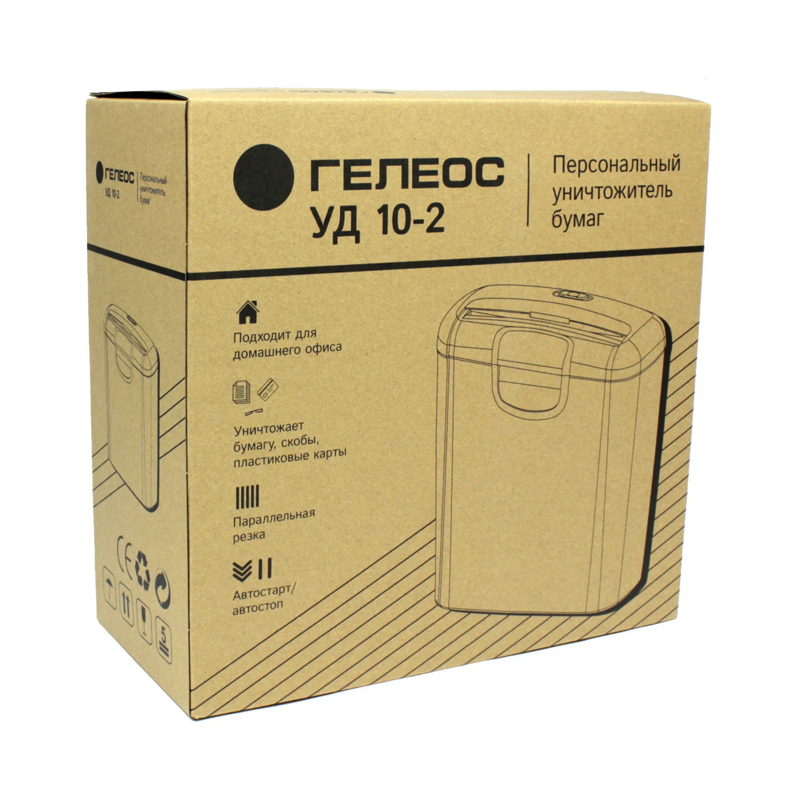 Шредер ГЕЛЕОС УД10-2, DIN P-2 (2 ур-нь секр.), полоса 5,8мм, 6-8 лист (70г/м2), пл.карты/скобы, 10 литров