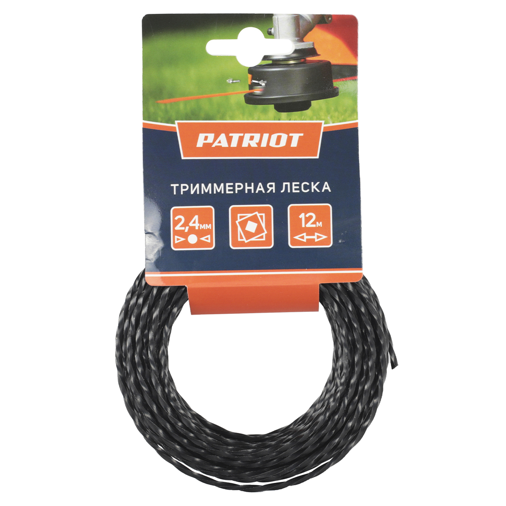 Леска для садовых триммеров PATRIOT D 2,4 мм L 12 м (скрученный квадрат, черный) 240-12-5, картонный подвес