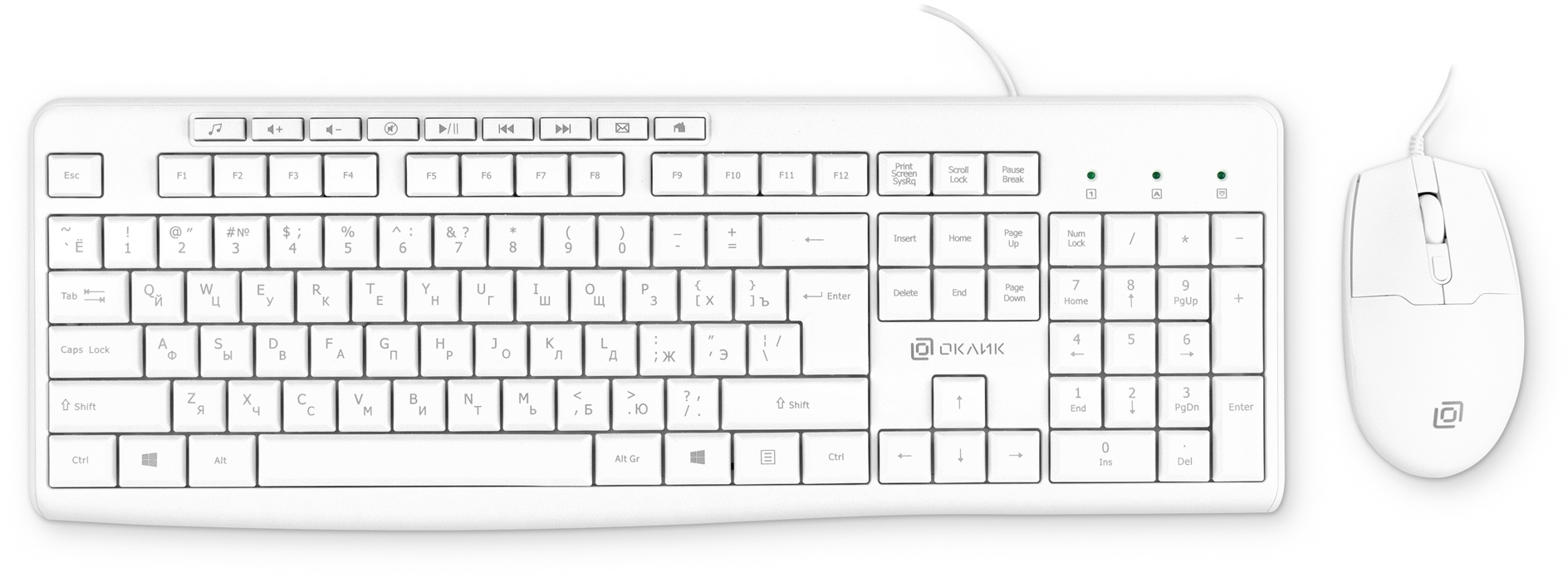 Клавиатура + мышь Oklick S650 клав:белый мышь:белый USB Multimedia, длина провода 1.5