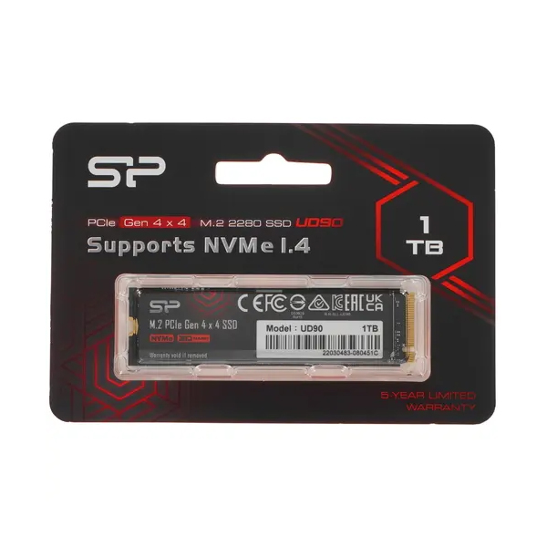 Твердотельный накопитель SSD M.2 1Tb Silicon Power PCI-E 4.0 x4 SP01KGBP44UD9005 M-Series UD90 M.2 2280 чтение - 4800 Мбайт/сек, запись - 4200 Мбайт/сек, 3 бит TLC, NVM Express