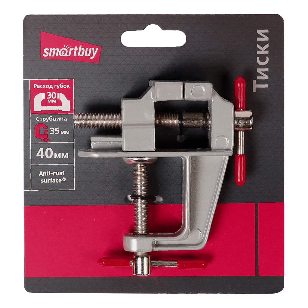 Тиски 40мм слесарные, с зажимами для детали и крепления к столу Smartbuy