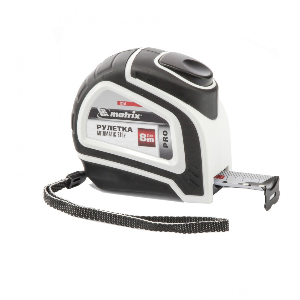 Рулетка Matrix Autostop 8м х 25мм, автоматическая фиксация 32553
