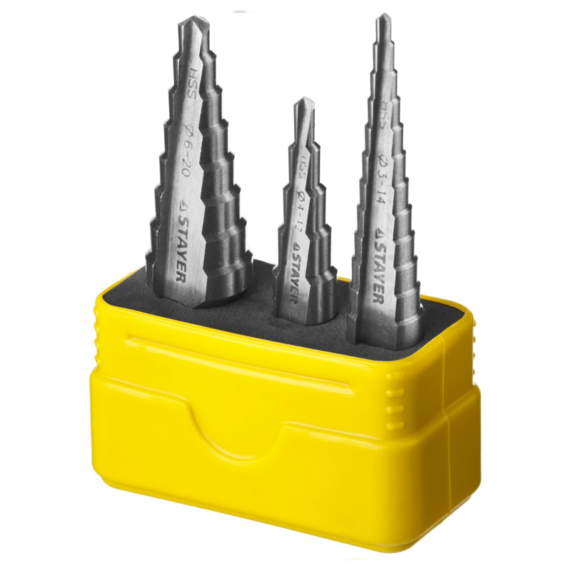 Набор сверл по металлу ступенчатых 3 шт, 3-20мм, STAYER (3-14, 4-12, 6-20)