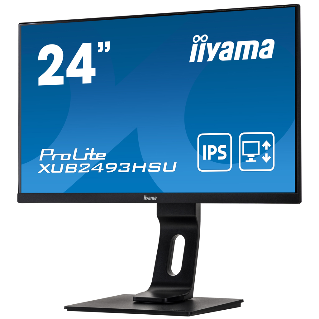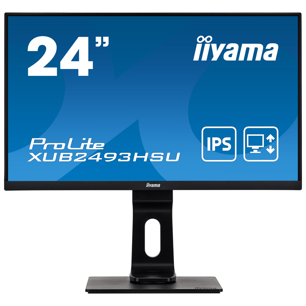 Монитор 23,8" Iiyama ProLite XUB2493HSU-B1 Цвет черный, матрица IPS, 1920x1080(16:9) matt 75Hz, отклик 4ms, угол 178°/178°, яркость 250cd/m2, контрастность 1000:1, разъемы VGA DP HDMI, поворотный экран, динамики 2x2Вт, блок питания внутренний