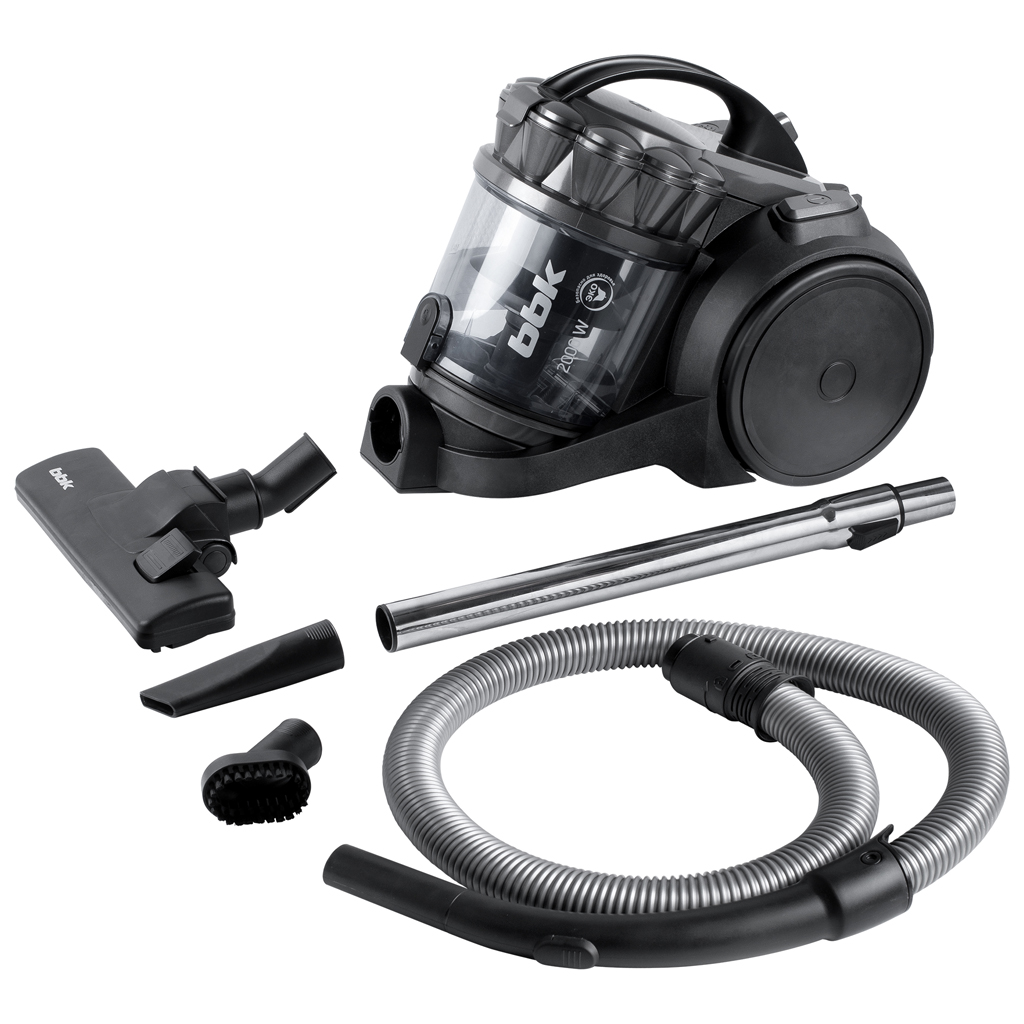 Пылесос BBK BV1505 сер. уборка : сухая; мощность : 2000 Вт; мощность всасывания : 350 Вт; труба : телескопическая, сталь; пылесборник : контейнер (циклон), 2 л; длина сетевого шнура : 5 м; фильтры : HEPA, тонкой очистки, моторный; цвет корпуса : серый.