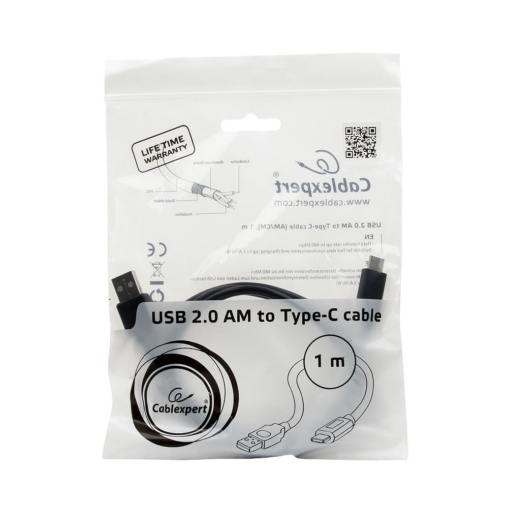 Дата-кабель USB Cablexpert CCP-USB2-AMCM-1M-RU-W, USB2.0 AM/ USB3.1 Type-C, 1м, белый, пакет