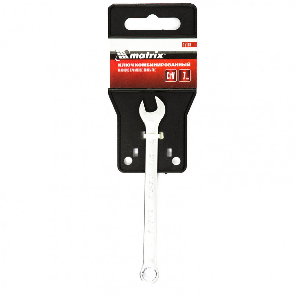 Ключ комбинированный 7мм, CrV, матовый хром 15103