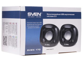 Колонки SVEN 2.0 170 Цвет черный/белый, мощность 2х2,5.5Вт, диапозон частот 100-20000Hz, регулятор громкости, аудиовход jack3.5mm, материал корпуса пластик, питание USB