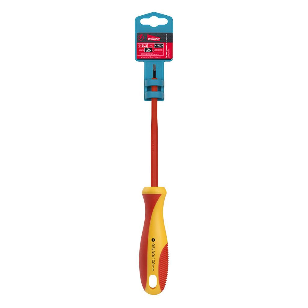 Отвертка шлицевая SL3x100, до1000В, VDE, диэлектр , прорез.ручка, серт. испыт. Smartbuy