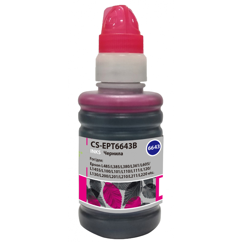 Чернила Cactus CS-EPT6643B T6643 пурпурный 100мл для Epson L100 L110 L120 L132 L200 L210 L222 L300 L312 L350 L355 L362 L366 L456 L550 L555 L566 L1300