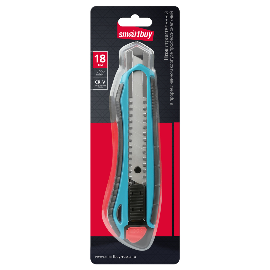 Нож строительный 18 мм, отламываемое лезвие, прорезиненный корпус, металл. направл., Smartbuy Tools