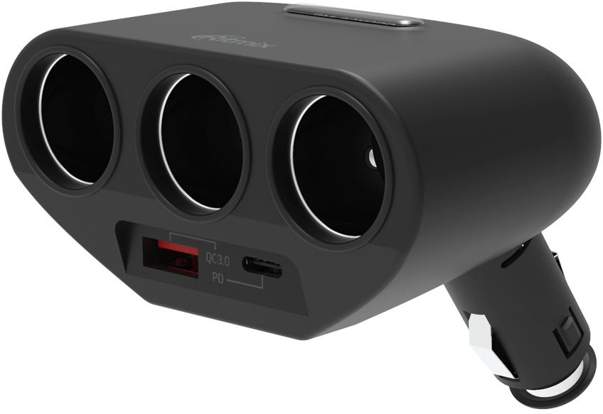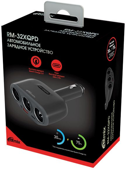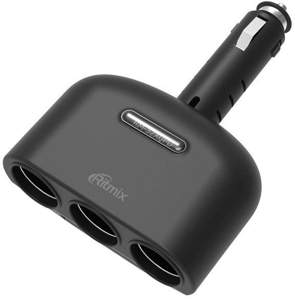 Разветвитель розетки прикуривателя Ritmix RM-32XQPD 3xSoc 2xUSB черный (80000165)
