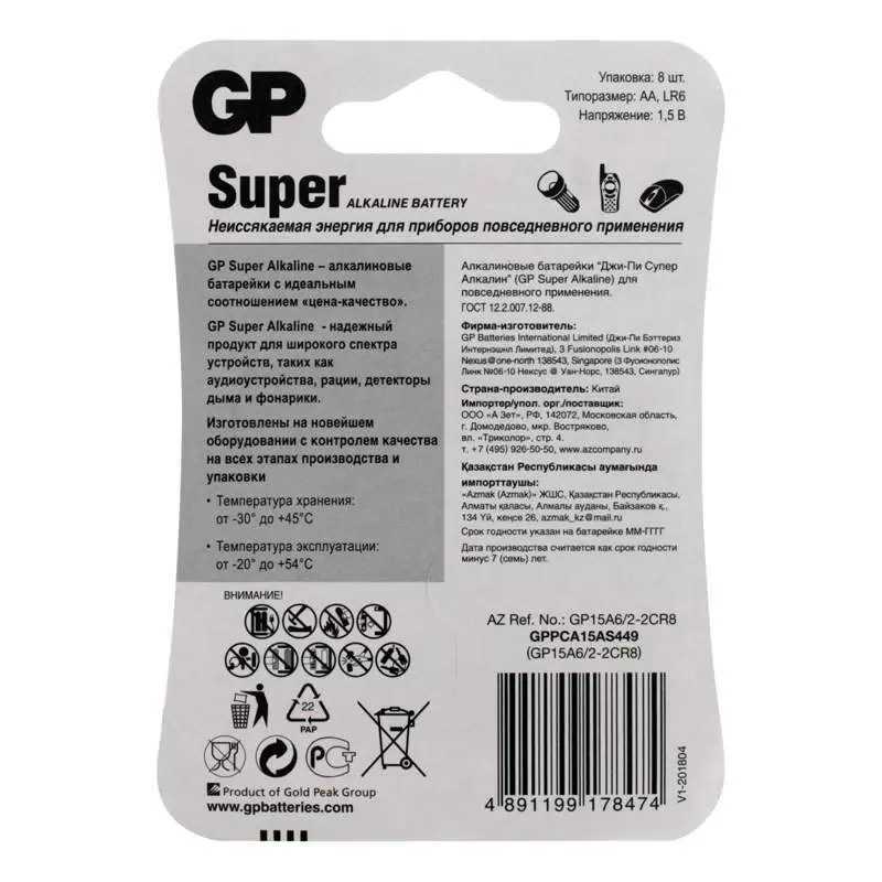 Батарейка AA GP Super Alkaline 15AA21-2CRSBC8 AA (8шт)