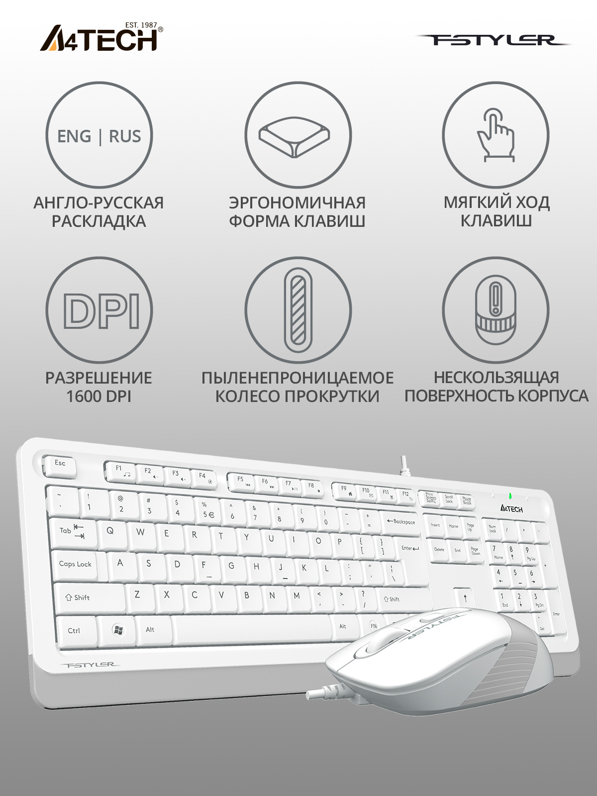 Клавиатура + мышь A4TECH Fstyler F1010 белый/серый USB
