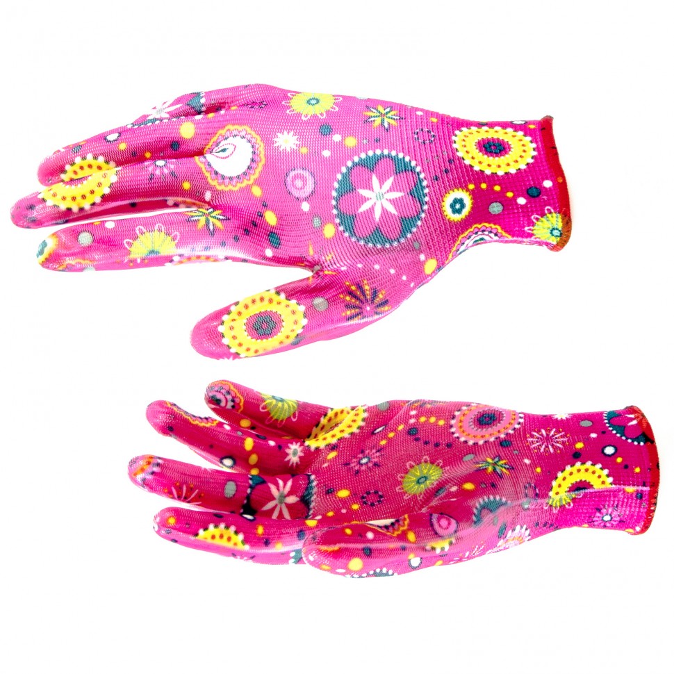 Перчатки садовые из полиэстера с нитрильным обливом, красные, М, Palisad (67746)