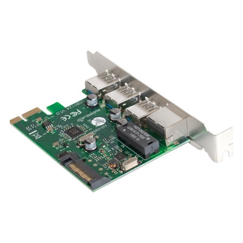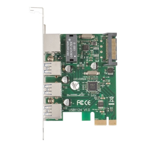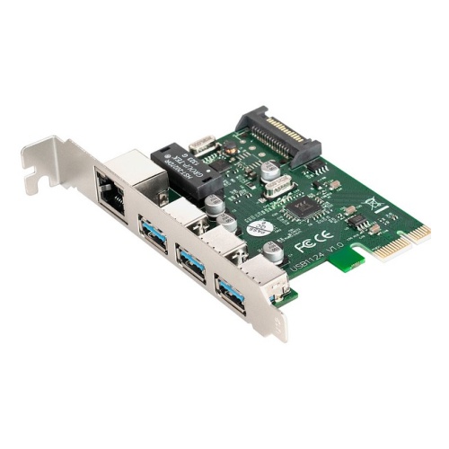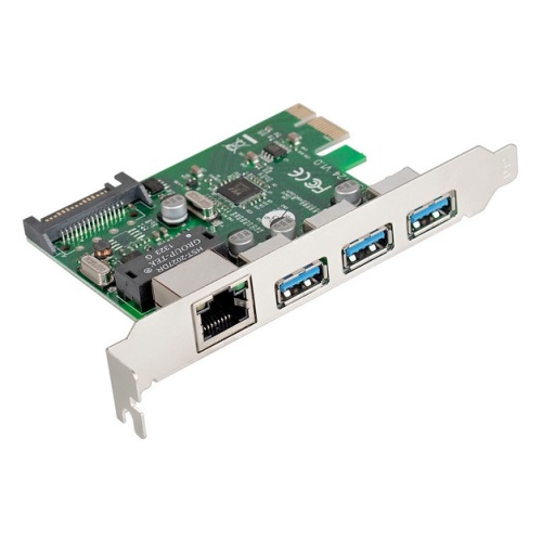 Контроллер USB 3.0 ExeGate EXE-361 PCI-E 2.0, 3*USB3.0 ext + LAN UTP 1000Mbps, раз.доп.пит.OEM)