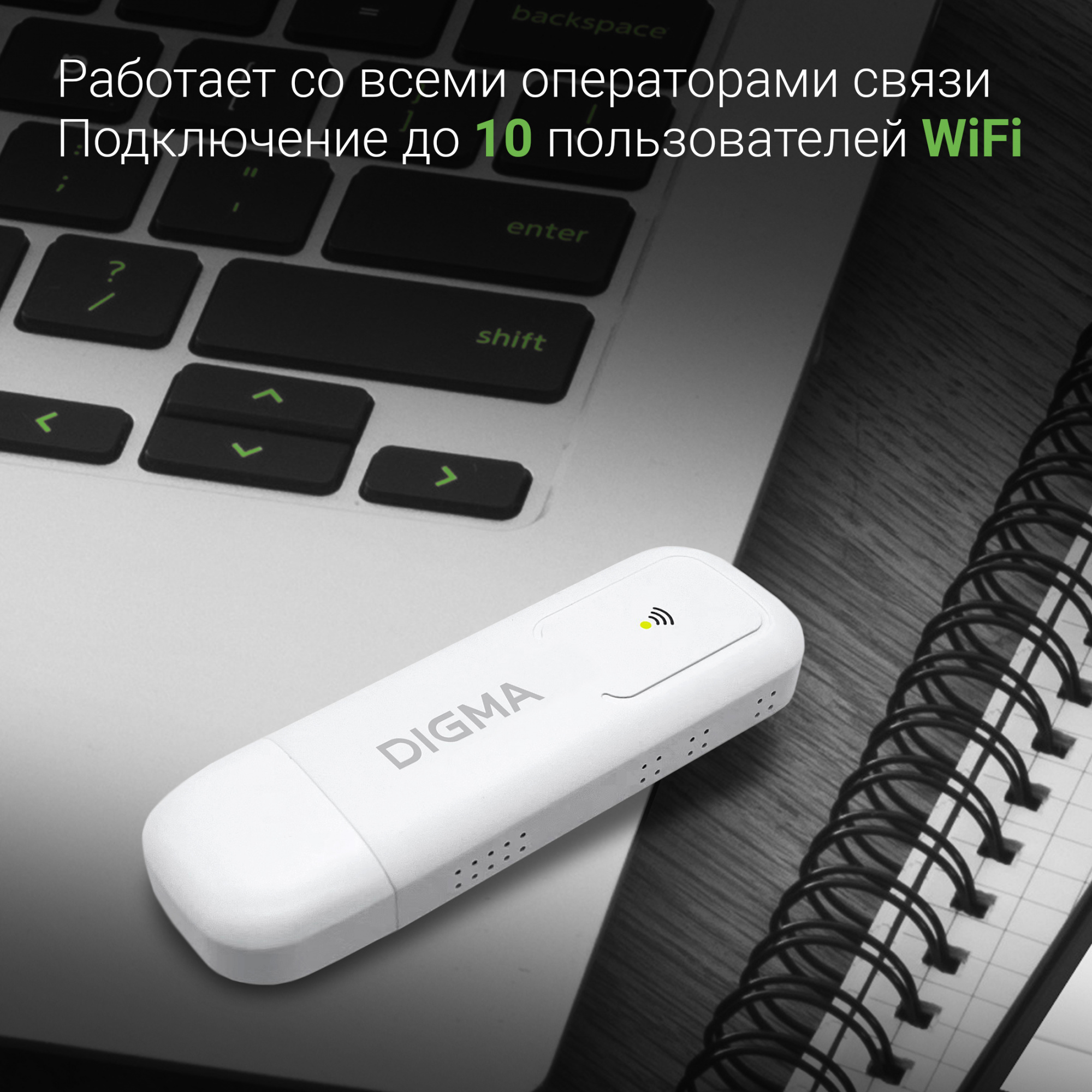 Модем 3G/4GDigma Dongle Wi-Fi DW1960 USB Wi-Fi Firewall +Router внешний белый DW1960WH