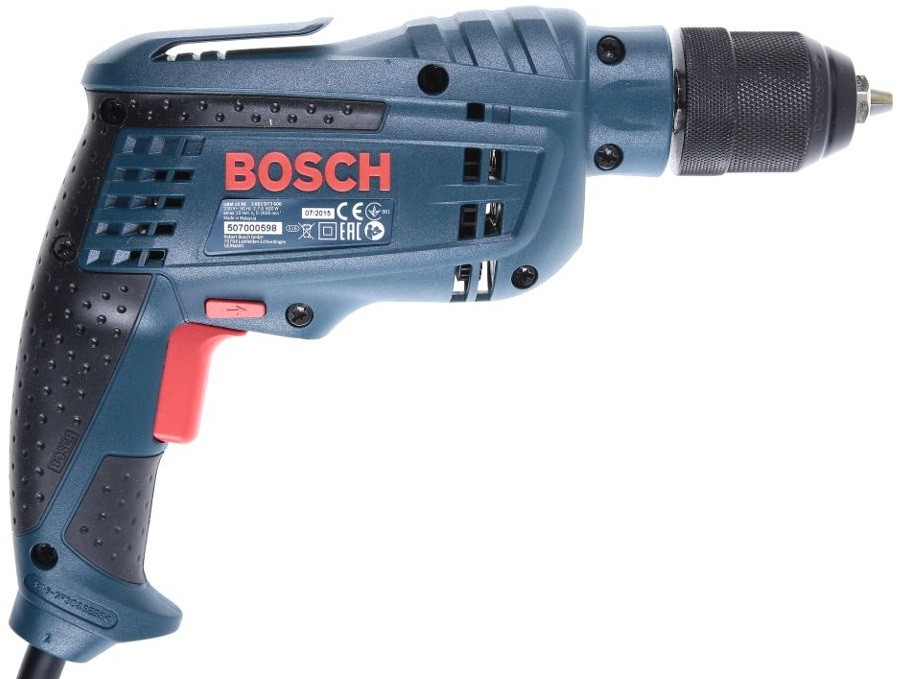 Дрель Bosch GBM 10 RE безударная 600Вт, патрон:1-10мм быстрозажимной, 0-2600об/мин, сталь-10мм, дерево-25мм, регулировка оборотов, реверс, фиксация клавиши "Пуск", 1.8кг (0601473600)
